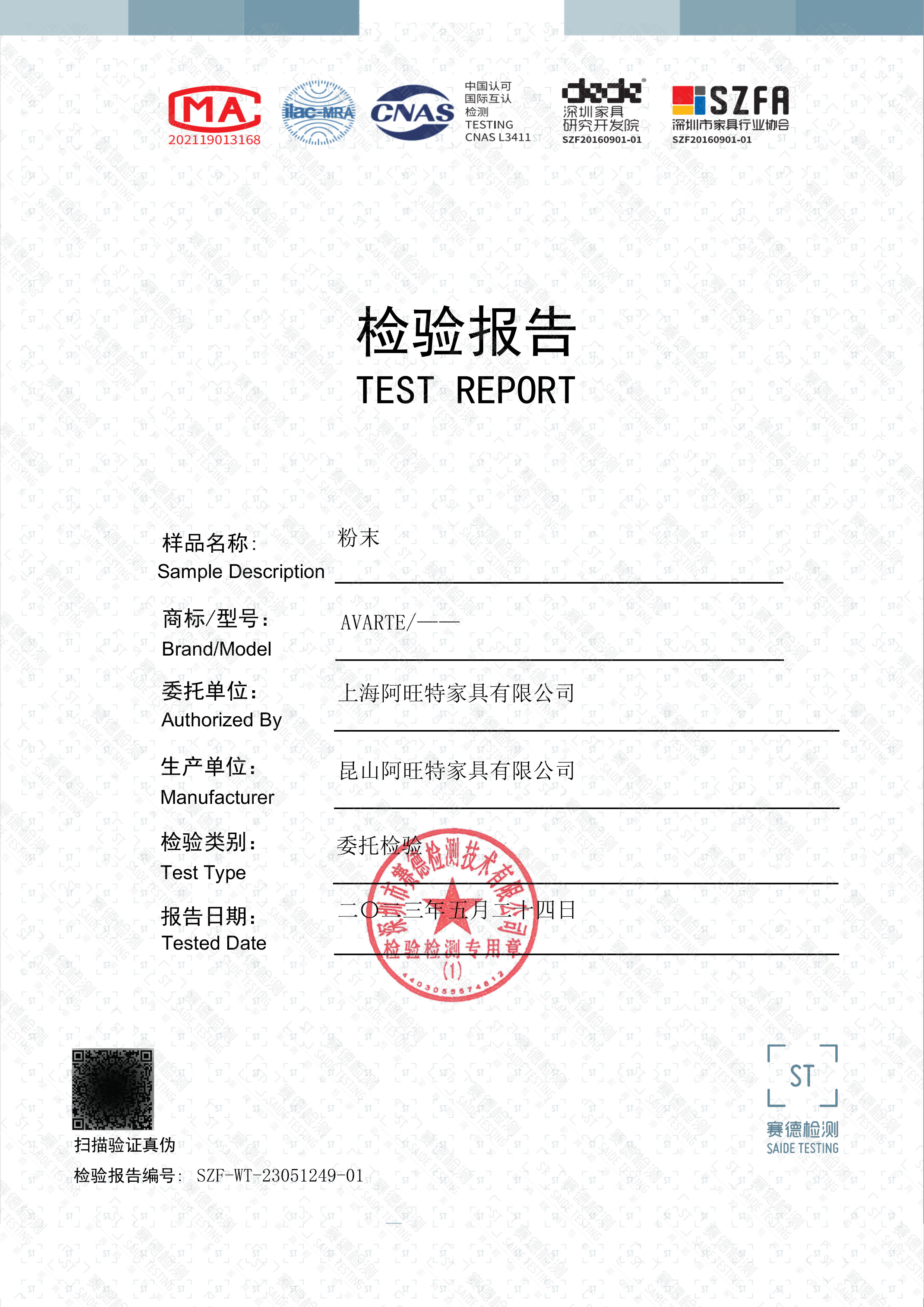 家具成品檢測