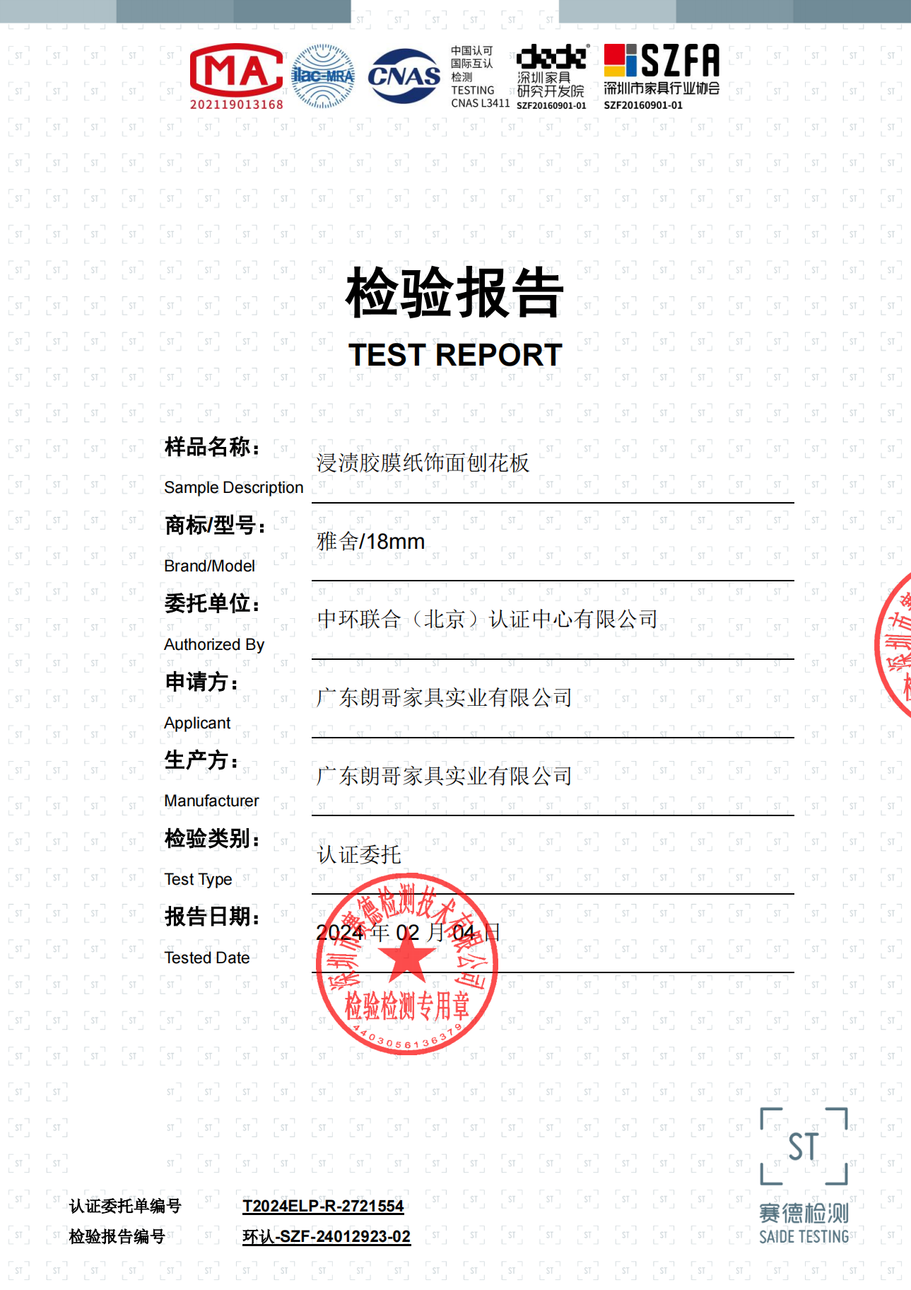 環認-SZF-24012923-02廣東朗哥家具實業有限公司-浸漬膠膜紙飾面刨花板