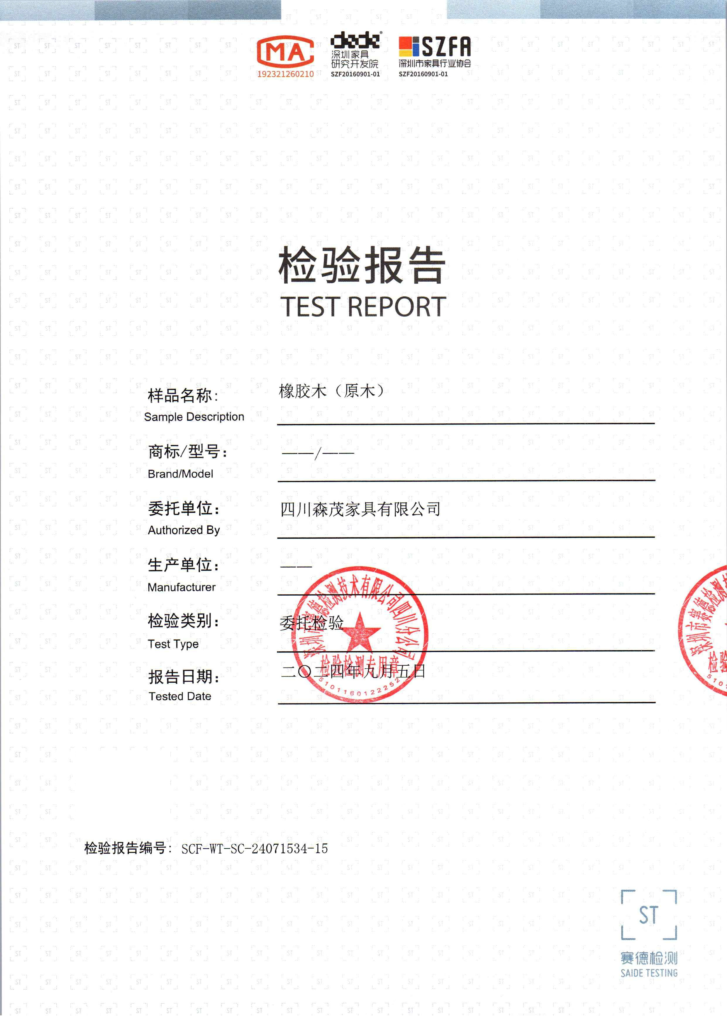 家具原輔材料檢測